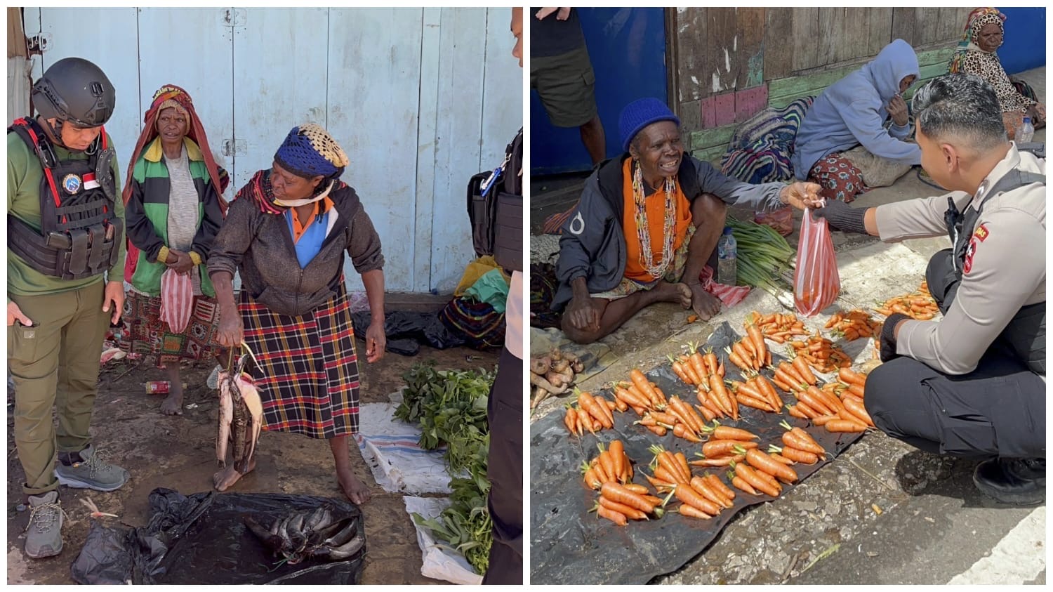 Selain bertransaksi, interaksi hangat terjalin di lapak-lapak sederhana tersebut. Senyum dan sapaan mama-mama pedagang seakan menegaskan betapa pentingnya perhatian kecil dari aparat terhadap roda ekonomi lokal.