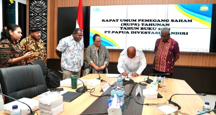 JAYAPURA-NUSANTATAPOST.ID-Gubernur Papua Matius D. Fakhiri dan Bupati Mimika Johannes Rettob menghadiri Rapat