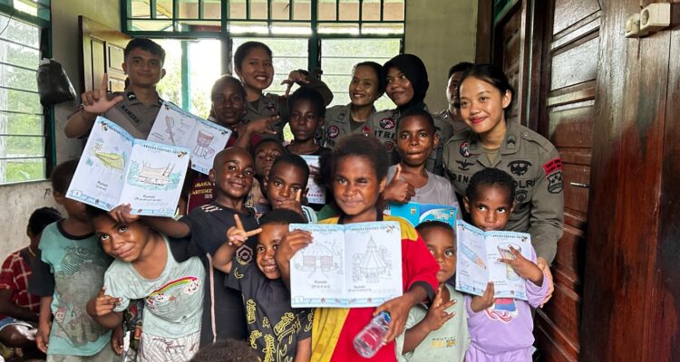 KENYAM-NUSANTARAPOST.ID-Puluhan anak-anak Kampung Yunad, Distrik Kenyam, Kabupaten Nduga, Papua Pegunungan, tampak antusias