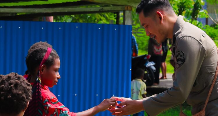 YALIMO-NUSANTARAPOST.ID-Wajah-wajah mungil penuh kebahagiaan tampak di Kabupaten Yalimo saat Satuan Tugas Bantuan